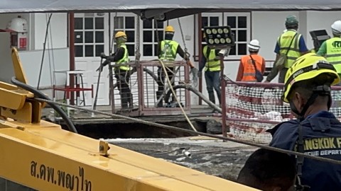 จนท.เทปูนลงใต้อาคารสน.สามเสน ปมถนนทรุด