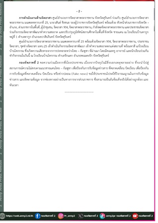 กองทัพภาคที่ 2 ขอความร่วมมือจากพี่น้องประชาชน เนื่องจากปัจจุบันมีสิ่งบอกเหตุหลายอย่าง ที่จะนำไปสู่สถานการณ์ความไม่สงบตามแนวชายแดนไทย – กัมพูชา เพื่อป้องกันการรับข้อมูลข่าวสาร ที่คลาดเคลื่อน บิดเบือน เพื่อป้องกันการรับข้อมูลที่คลาดเคลื่อน บิดเบือน หรือข่าวปลอม (Fake news) ขอให้ประชาชนโปรดใช้วิจารณญาณในการรับข้อมูลข่าวสาร และติดตามข้อมูล จากช่องทางอย่างเป็นทางการจากส่วนราชการ ซึ่งสามารถยืนยันข้อเท็จจริงได้อย่างถูกต้อง และทันเวลา