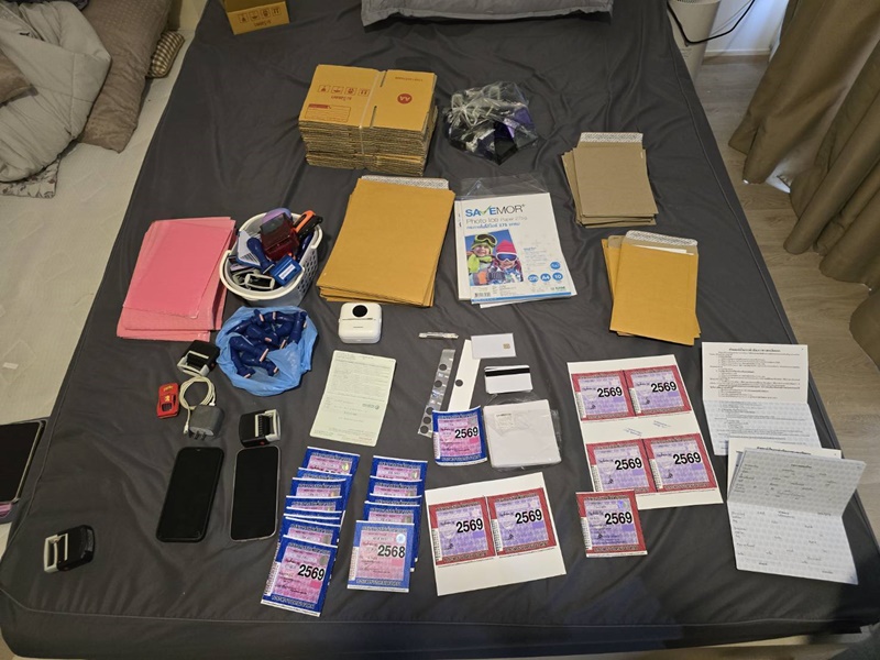 สืบเนื่องจากเจ้าหน้าที่ บก.สส.ภ.1 สืบสวนพบว่ามีการกระทำความผิดฐานปลอมแปลงเอกสารราชการ โดยการจัดทำและจำหน่ายป้ายต่อภาษีรถยนต์ ผ่านช่องทางเข้าเว็บไซต์ มีพฤติการณ์ประกาศโฆษณาและรับปลอมแปลงแผ่นป้ายทะเบียนและแผ่นป้ายวงกลมแสดงการเสียภาษี ผ่านสื่อออนไลน์ซึ่ง ประชาชนทั่วไปสามารถเข้าถึง จึงได้ทำการล่อซื้อแผ่นป้ายทะเบียนและแผ่นป้ายวงกลมแสดงการเสียภาษี และได้โอนเงินชำระค่าสินค้า จากบัญชีธนาคารกรุงไทยซึ่งเป็นบัญชีของสายลับ ไปยังบัญชีธนาคารกสิกรไทย ชื่อบัญชีนายฉัตรมงคล เมื่อวันที่ 14 ก.ย.68 เป็นจำนวนเงิน 4,500 บาท เมื่อได้ทำเอกสารเสร็จแล้ว ตนจะเรียกไรเดอร์นำเอกสารราชการปลอมไปส่งพัสดุที่ร้านที่เคยส่งประจำ