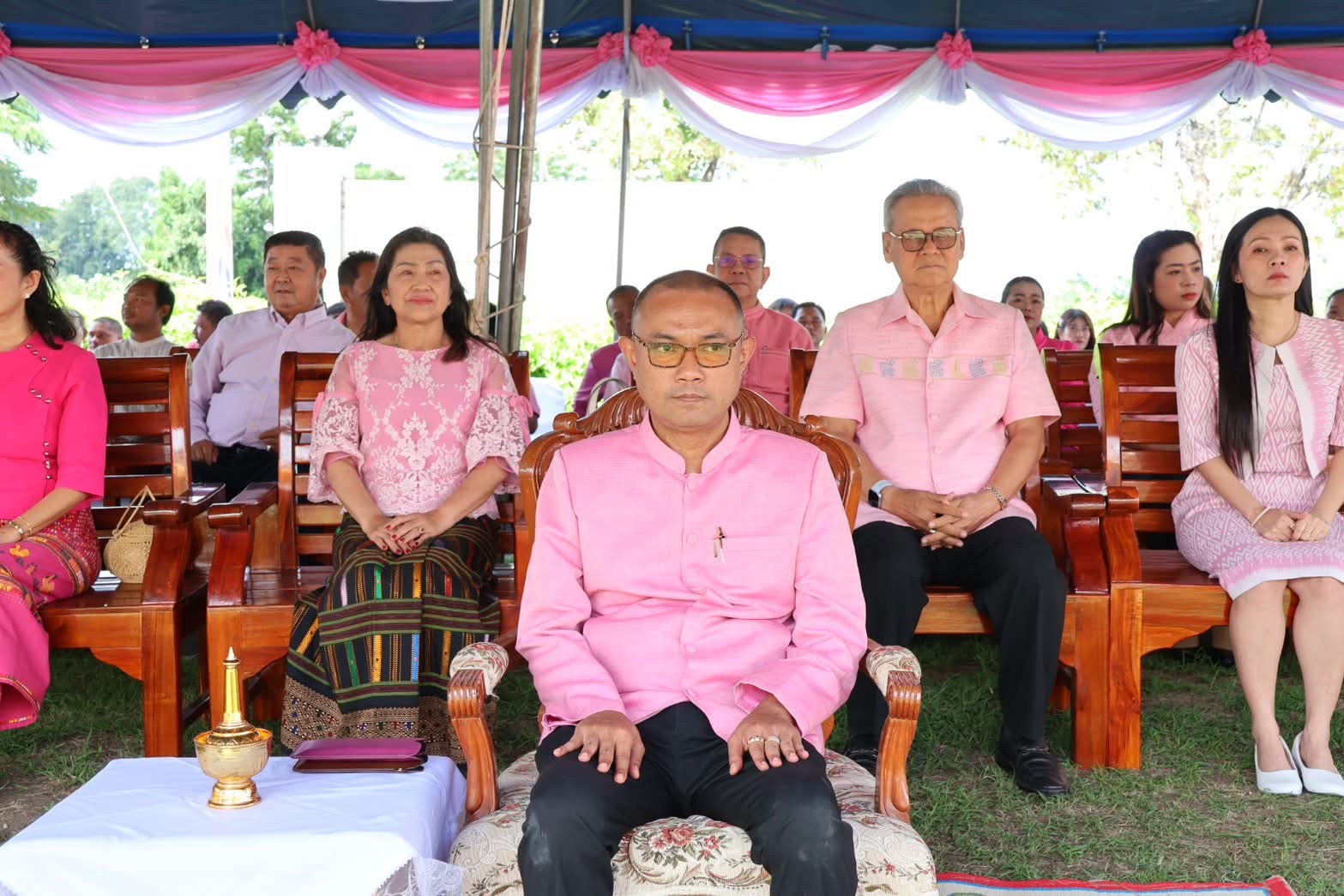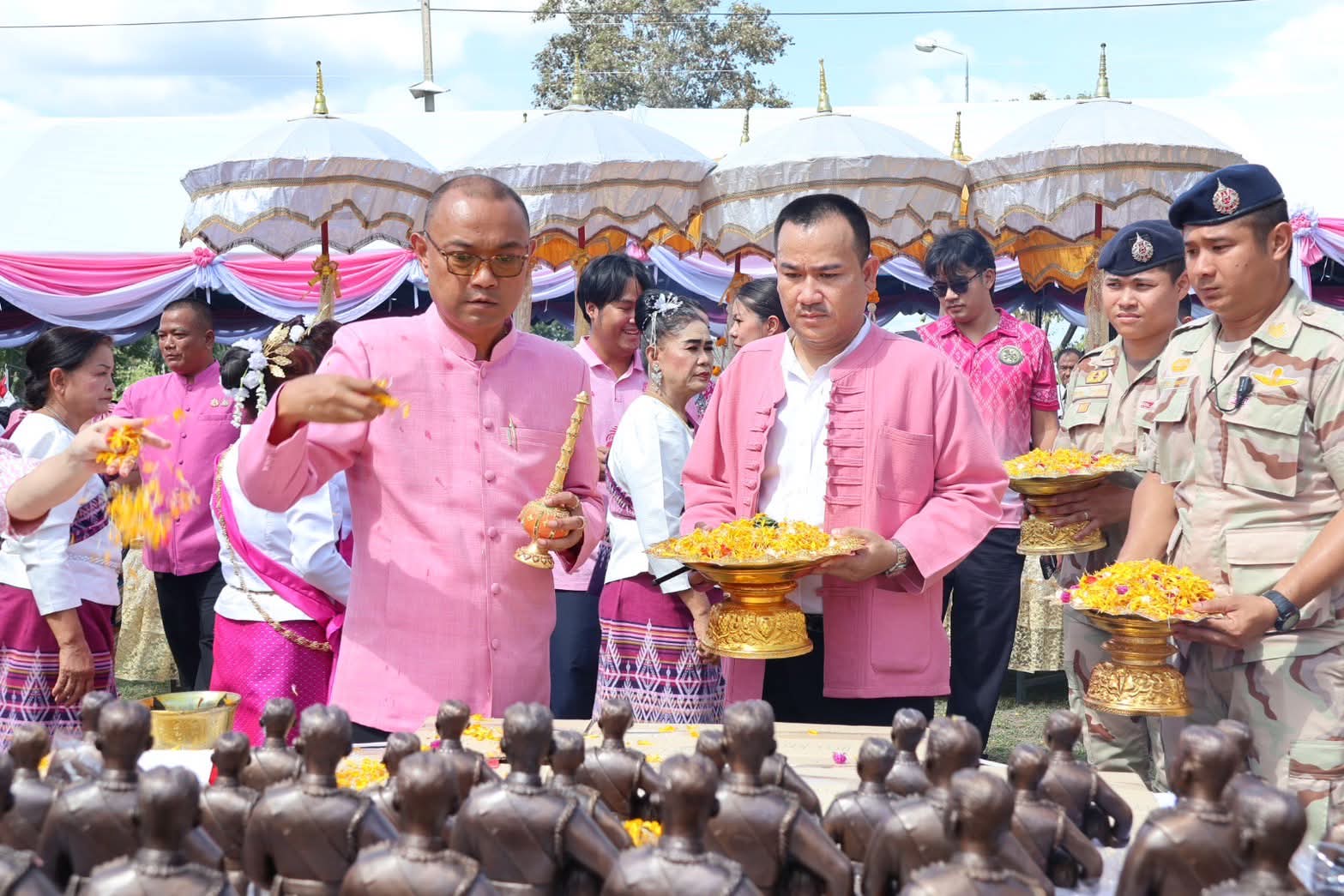 พิธีอันเป็นมงคลในครั้งนี้ ได้รับเกียรติจากบุคคลสำคัญหลายท่าน อาทิ นายวิเชียร - นางอังคณา พุฒิวิญญู อดีตผู้ว่าราชการจังหวัดสระบุรี และภริยา, นายพลวรรธน์ - นางจณิตา เทียนชัยมงคล อดีตรองผู้ว่าราชการจังหวัดสระบุรี และภริยา รวมถึงหัวหน้าส่วนราชการระดับอำเภอ, นายกองค์กรปกครองส่วนท้องถิ่น, ผู้บริหารสถานศึกษา, ชมรมกำนันผู้ใหญ่บ้าน, ภาคเอกชน และประชาชนชาวอำเภอวังม่วง มาร่วมสักการะโดยพร้อมเพรียงกัน