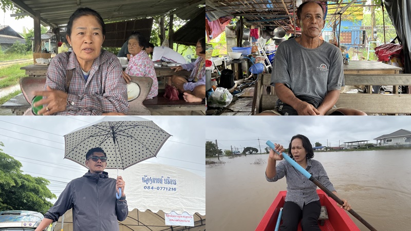 คุณยายบุญธรรม ป้องกันภัย และคุณยายประจวบ จำนงค์สอน เปิดเผยทั้งน้ำตาว่า เกิดมา 80 กว่าปี ไม่เคยลำบากเท่านี้ ต้องขนของหนีน้ำทุกวัน เรี่ยวแรงก็ไม่มี ผู้สูงอายุทุกคนลำบาก น้ำท่วมทุกตำบล วอนพ่อหลวง ร.10 ช่วยประชาชนด้วย พวกเรากำลังเหมือนจะจมน้ำตายอยู่ตรงนี้