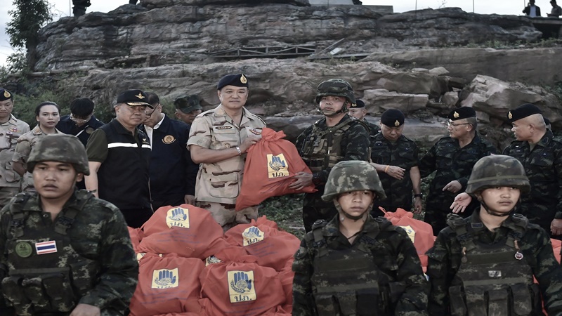 หลังจากนั้น นายกรัฐมนตรี กล่าวให้กำลังใจกำลังพลทหารว่า ขอแสดงความเป็นห่วงและขอแสดงความชื่นชมที่น้อง ๆ ทำหน้าที่รักษาบ้านเมือง รักษาประชาชนต้องถือว่าเป็นวีรกรรมที่กล้าหาญมาก และพวกเราจะไม่ทิ้งกันเราจะไม่มีวันที่จะยอมเสียเปรียบ หรือยอมเสียดินแดน และไม่ยอมให้พวกน้องเป็นอะไร พวกเราจะดูแลพวกน้องอย่างเต็มที่ และให้กำลังใจกันอย่างเต็มที่ ขอให้พวกเรายึดมั่นและตั้งมั่นอยู่ในความระมัดระวังตัวของตัวเองอยู่ตลอดเวลา เราจะเร่งแก้ปัญหาทั้งหมดให้เร็วที่สุด ทั้งนี้ วันนี้ชัดเจนแล้วว่าฝ่ายตรงข้ามได้ละเมิดสิ่งที่เราตกลงกันไว้ ชัดเจนแล้วเราจะทำในสิ่งที่เราเห็นว่าสมควรจะทำไม่อยู่ภายใต้เงื่อนไขใดๆอีกต่อไป เราต้องมีการเตรียมพร้อมและรับฟังคำสั่งจากผู้บังคับบัญชา ต้องโชคดีและปลอดภัย เพราะเราทำหน้าที่เพื่อประเทศชาติของเรา ตนจะมาหาบ่อย ๆ