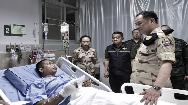 วันที่ 12 พฤศจิกายน 2568 ผู้สื่อข่าวรายงานว่า นายอนุทิน ชาญวีรกูล นายกรัฐมนตรี และรมว.มหาดไทย และคณะ เดินทางด้วยเฮลิคอปเตอร์ มาถึงยังโรงพยาบาลค่ายสรรพสิทธิประสงค์ ตำบลแสนสุข อำเภอวารินชำราบ จังหวัดอุบลราชธานี เพื่อเยี่ยมให้กำลังใจกำลังพลที่ได้รับบาดเจ็บ 4 นาย คือ 1.จ.ส.อ.เทอดศักดิ์ สมาพงษ์ ตำแหน่งสนาม ผบ.มว.ปล. ได้รับบาดเจ็บ ข้อเท้าขวาขาด 2.พลทหารวชิระ พันธะนา ตำแหน่งในสนาม พลกระสุนที่ 2 ได้รับบาดเจ็บ โดนแรงอัดระเบิด 3.พลทหารอภิรักษ์ ศรีชมไชย ตำแหน่งในสนาม พลยิง M203 ได้รับบาดเจ็บ โดนสะเก็ดระเบิดเข้าที่น่องขาขวา จำนวน 2 รู และ 4.พลทหารอนุชา สุจารี ตำแหน่งในสนาม พลปืนเล็ก ได้รับบาดเจ็บ ฝุ่นหรือสารเคมีจากระเบิดเข้าตา ภายหลังจากเมื่อวันที่ 10 พ.ย.ที่ผ่านมา เหยียบทุ่นระเบิดขณะลาดตระเวนที่ห้วยตามาเรีย อ.กันทรลักษ์ จ.ศรีสะเกษ