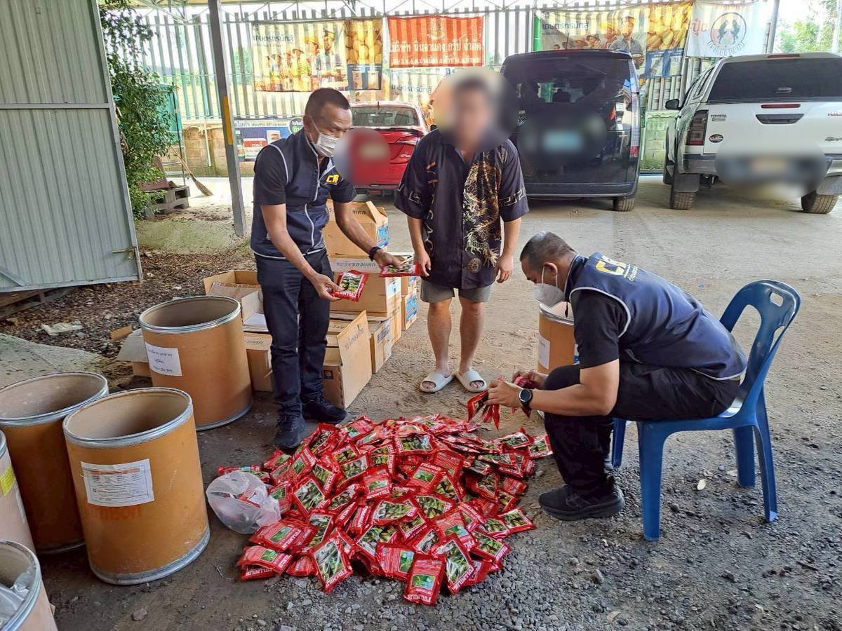 สำหรับการเข้าตรวจยึดครั้งนี้ สืบเนื่องจากได้มีผู้ลักลอบจำหน่ายผลิตภัณฑ์ยาฆ่าหญ้า ยาฆ่าแมลง และสารเคมีทางการเกษตรที่เป็นสินค้าปลอมเลียนแบบยี่ห้อดัง ที่เป็นสินค้าต้องห้ามหรือสินค้าควบคุมจำนวนมาก ผ่านทางแพลตฟอร์มซื้อขายออนไลน์ต่างๆ จึงแกะรอยสืบหาเบาะแส จนกระทั่งทราบสถานที่จัดเก็บ เป็นร้านจำหน่ายปุ๋ยแห่งหนึ่งตั้งอยู่ในพื้นที่ จ.ลำพูน จึงนำกำลังเข้าตรวจสอบก่อนนำมาสู่การตรวจยึดของกลางได้ดังกล่าว โดยหลังจากนี้เจ้าหน้าที่จะเร่งรวบรวมพยานหลักฐานดำเนินการเอาผิดกับผู้ที่มีส่วนเกี่ยวข้องทั้งหมดตามขั้นตอนกฎหมายต่อไป