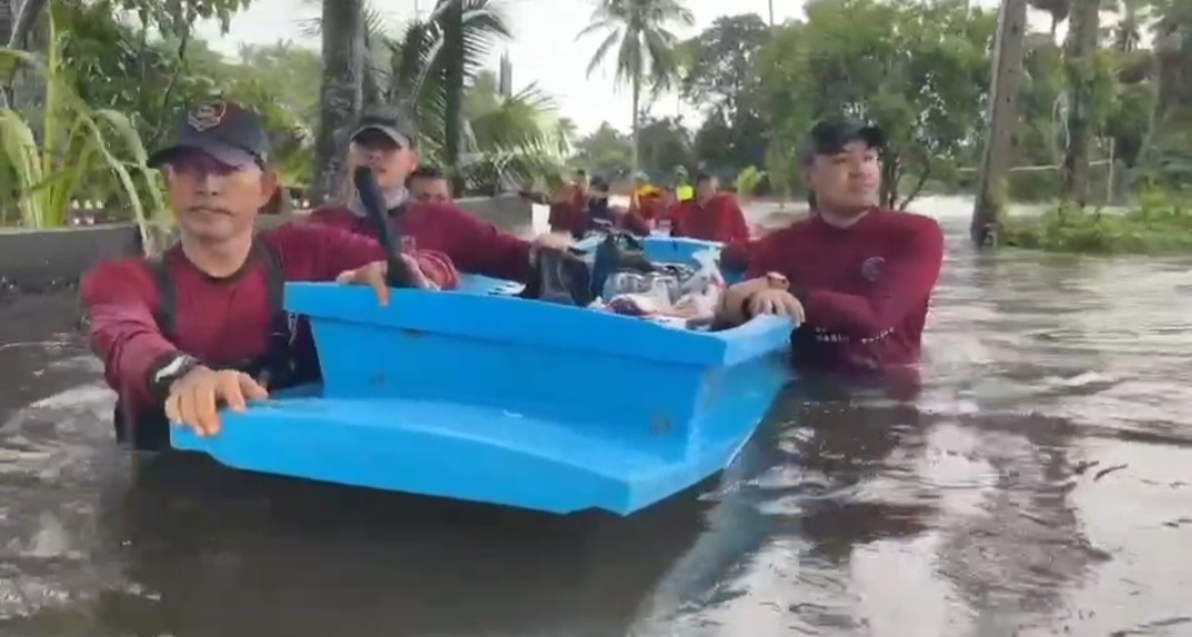 โดยตลอดทั้งวันในพื้นที่มีฝนตกลงมาอย่างต่อเนื่อง ทำให้ประชาชนได้รับความเดือดร้อนจากน้ำท่วมขัง เป็นเวลาหลายวัน ในขณะที่บางคนไม่สามารถออกจากบ้านได้เนื่องจากน้ำท่วมสูง ทางเจ้าหน้าที่ตำรวจน้ำปัตตานีจึงได้นำข้าวของเครื่องใช้ที่จำเป็นรวมไปถึงอาหารและน้ำดื่มไปให้ พร้อมทั้งได้พูดคุยให้กำลังใจกับประชาชนในพื้นที่อีกด้วย