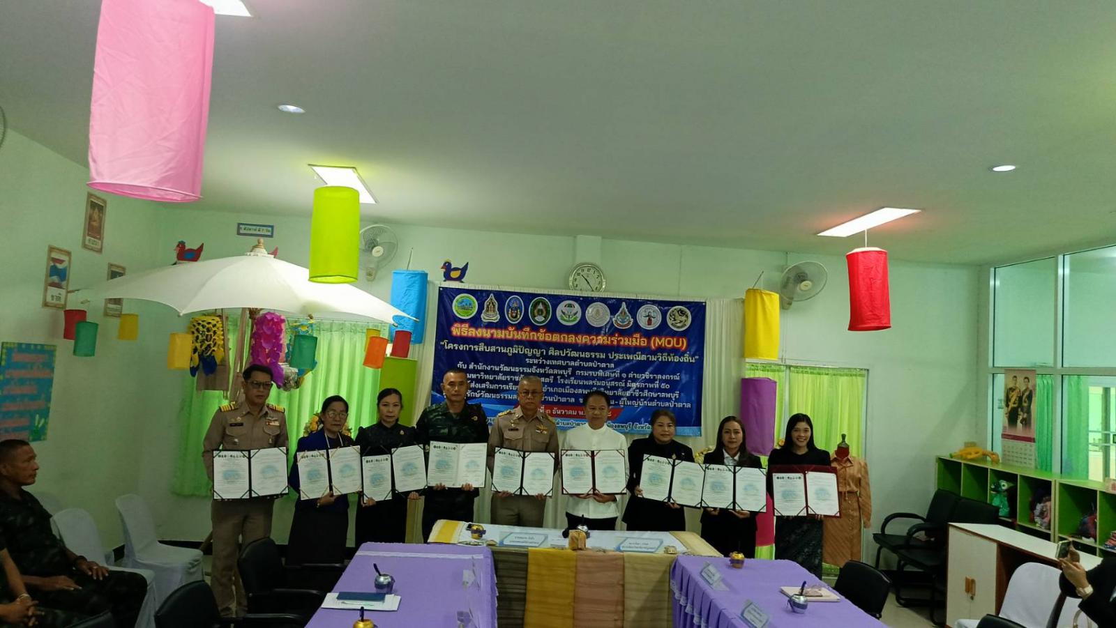 ความร่วมมือครั้งนี้เป็นการจับมือระหว่าง 9 หน่วยงาน ได้แก่ เทศบาลตำบลป่าตาล สำนักงานวัฒนธรรมจังหวัดลพบุรี กรมรบพิเศษที่ 1 ค่ายวชิราลงกรณ์ มหาวิทยาลัยราชภัฏเทพสตรี วิทยาลัยอาชีวศึกษาลพบุรี โรงเรียนพลร่มอนุสรณ์ มิตรภาพที่ 50 ศูนย์ส่งเสริมการเรียนรู้ระดับอำเภอเมืองลพบุรี ศูนย์อนุรักษ์วัฒนธรรมลาวเวียงบ้านป่าตาล และชมรมกำนันผู้ใหญ่บ้านตำบลป่าตาล เพื่อร่วมกันขับเคลื่อนโครงการสืบสานภูมิปัญญาและวัฒนธรรมในชุมชนอย่างยั่งยืน
