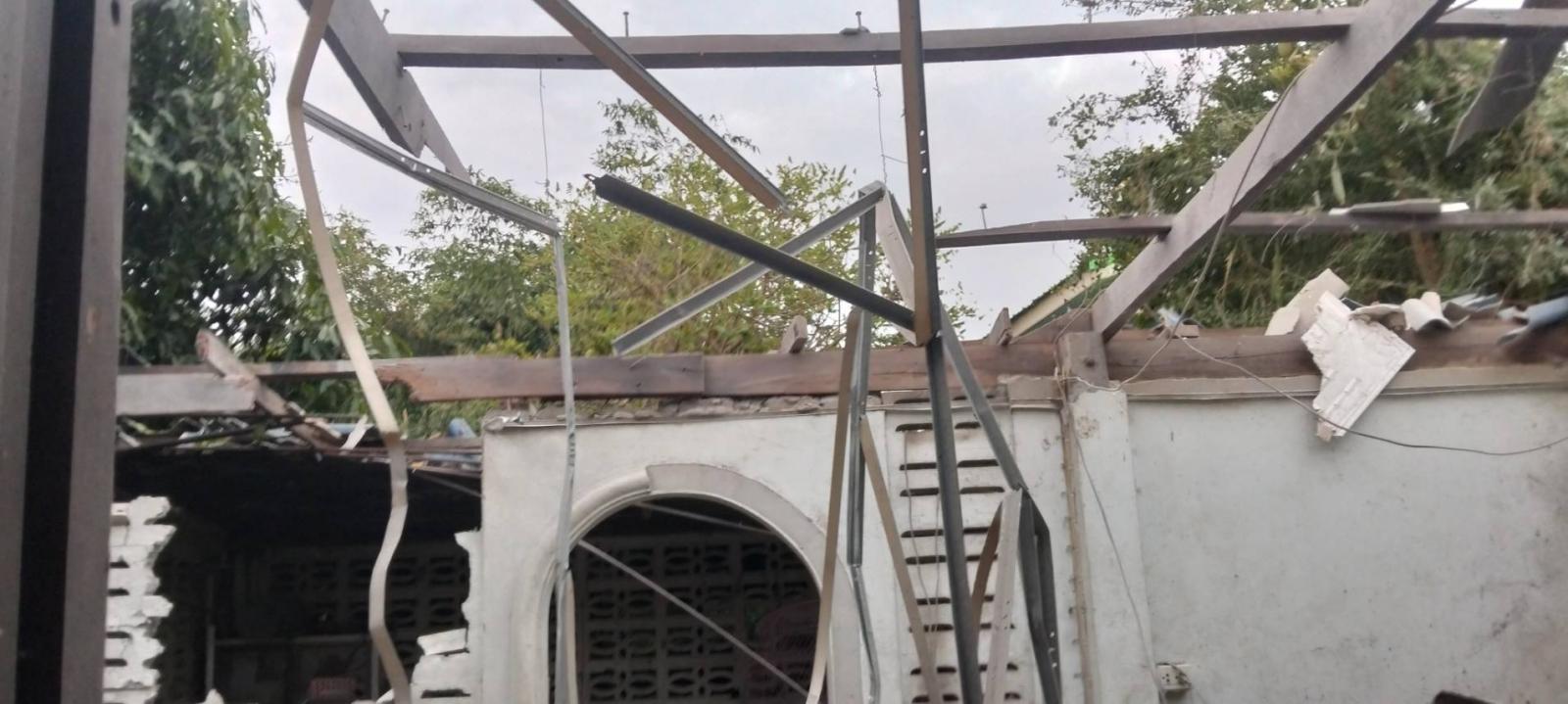 2. บ้านนายวิชา ฉ่ำดำ บ้านเลขที่ 170 ม.5 ต.ทัพเสด็จ ถูกเสก็ดระเบิดเสียหายเล็กน้อย