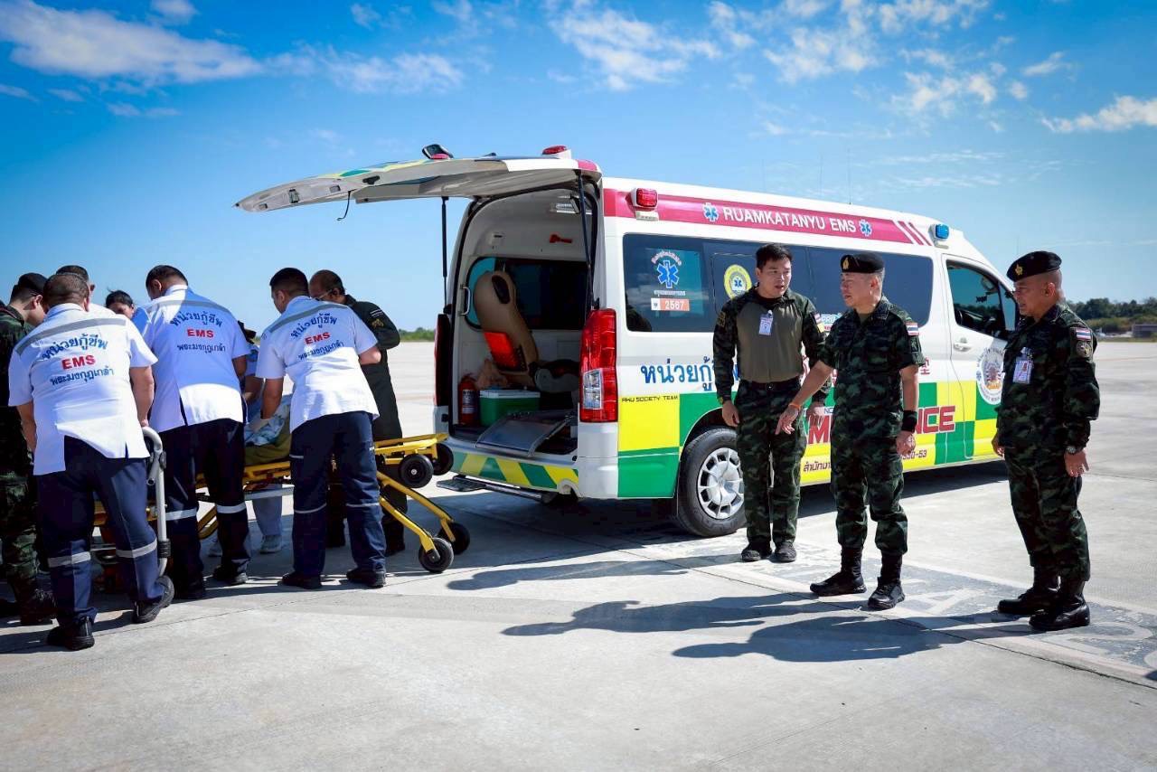 ทั้งนี้ เครื่องบินจะมาลงที่บน.6 (ดอนเมือง) ในเวลา 11.50 น. และทางศูนย์กู้ชีพโรงพยาบาลพระมงกุฎเกล้า จะนำทหารที่บาดเจ็บจากชายแดนไทย-กัมพูชา ทั้ง 4 นาย เดินทางไปรักษาต่อที่ รพ.พระมงกุฎเกล้า ด้วยรถพยาบาลจำนวน 4 คน หากผู้ใช้รถใช้ถนนพบเห็น บนถนนวิภาวดี ขอความกรุณาผู้ใช้เส้นทางใหัทางแก่รถพยาบาลดังกล่าวด้วย