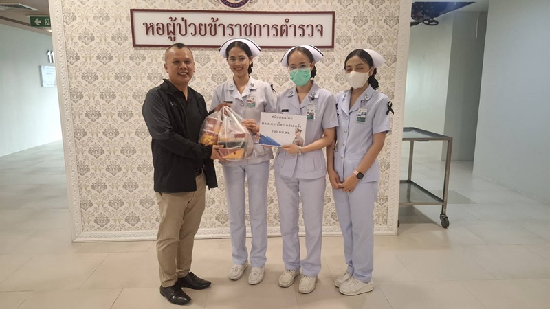 โดยมี พล.ต.ท.ไพบูลย์ เจียมอนุกูลกิจ รรท.แพทย์ใหญ่ โรงพยาบาลตำรวจ , คณะแพทย์ และพยาบาล ร่วมเป็นคณะตรวจเยี่ยมบำรุงขวัญ