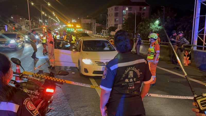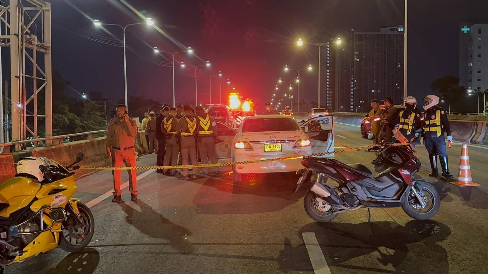 ที่เกิดเหตุห่างจากด่านเก็บค่าผ่านทางประมาณ 200 เมตร บริเวณเชิงทางสะพานข้ามถนนประชาชื่น พบรถยนต์ ยี่ห้อโตโยต้า อัลติส สีขาว ทะเบียนสระแก้ว จอดอยู่กลางถนน จากการตรวจสอบพบร่างผู้เสียชีวิต 1 ราย อายุ 34 ปี สภาพมีบาดแผลถูกอาวุธปืนยิงเข้าลำคอทะลุ 1 นัด นั่งเบาะคนขับจมกองเลือดอยู่ เจ้าหน้าที่บันทึกรวบรวมหลักฐานในที่เกิดเหตุ โดยกั้นแนวพื้นที่บริเวณดังกล่าวไว้