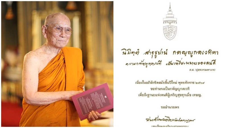“เนื่องในอภิลักขิตสมัยขึ้นปีใหม่ พุทธศักราช ๒๕๖๙ ขอท่านจงเป็นกตัญญูกตเวที เพื่อถึงฐานะแห่งคนดีผู้เจริญสุขทุกเมื่อ เทอญ”