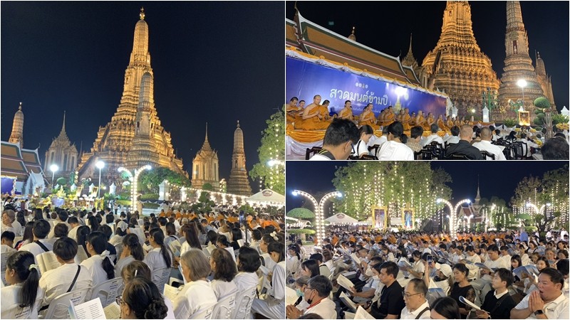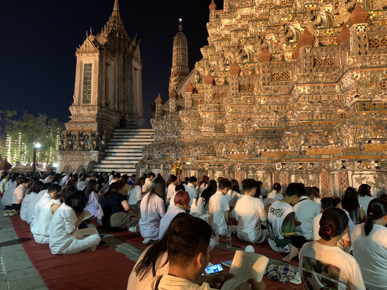 ในปีนี้ทางวัด โดยพระวชิรรัตนาภรณ์ ผู้ช่วยเจ้าอาวาส และเลขานุการวัดอรุณราชวราราม ได้เมตตาให้พุทธศาสนิกชนได้เข้ามานั่งสวดมนต์ภายในรั้วด้านในรอบองค์พระพุทธปรางค์ทั้ง 4 ด้าน เป็นภาพที่สวยงามยิ่ง