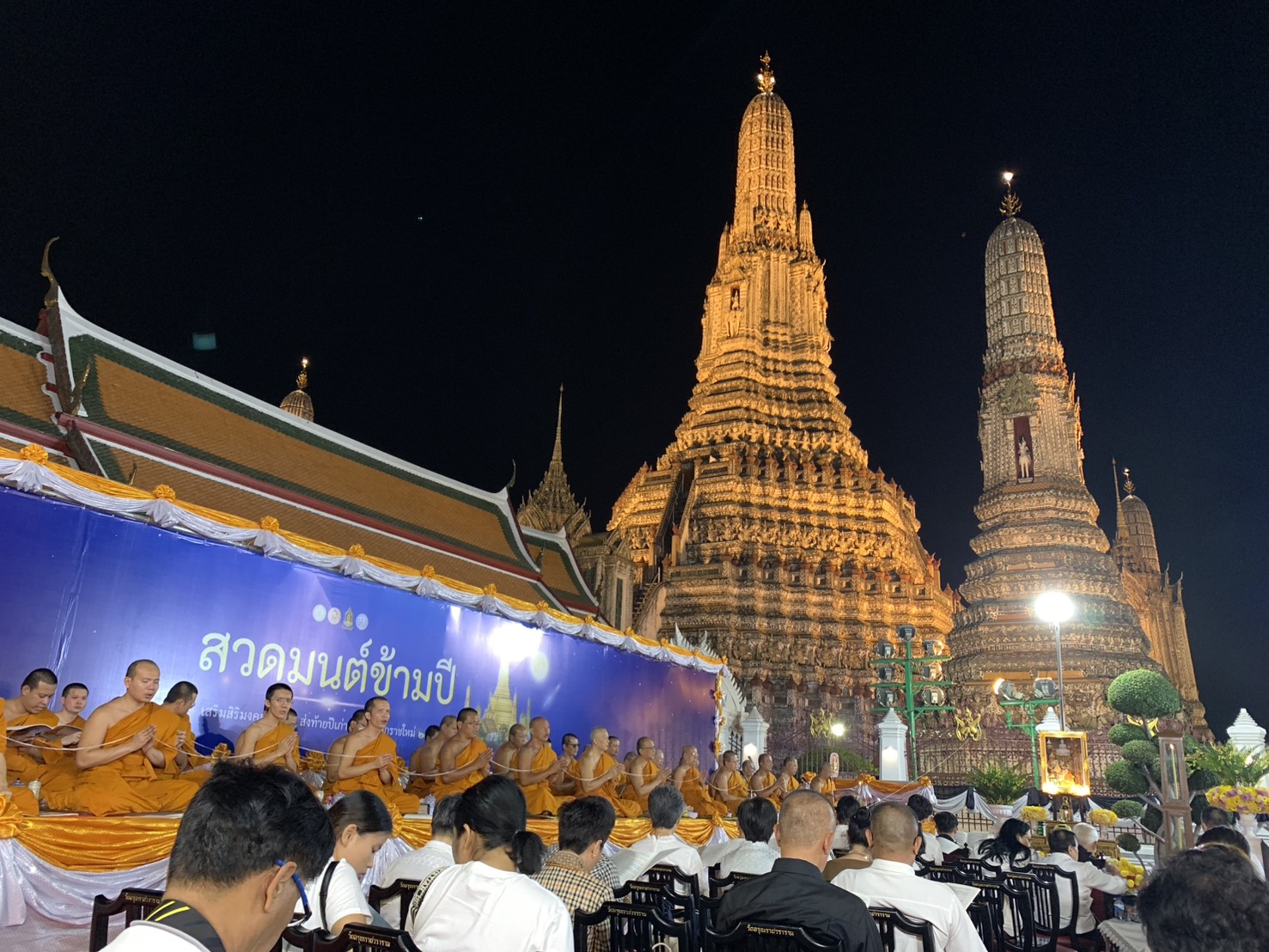 งานสวดมนต์ข้ามปี เสริมสิริมงคลทั่วไทย ส่งท้ายปีเก่า ต้อนรับศักราชใหม่ ๒๕๖๙ วัดอรุณราชวราราม จัดขึ้น ณ มณฑลพิธีพระพุทธปรางค์ โดยมีพระพรหมวัชรเมธี กรรมการเถรสมาคม ที่ปรึกษาเจ้าคณะภาค ๙ เจ้าอาวาสวัดอรุณราชวราราม ราชวรมหาวิหาร เป็นประธานฝ่ายสงฆ์ และนายชัยพล สุขเอี่ยม อธิบดีกรมการศาสนาประธานฝ่ายฆราวาส