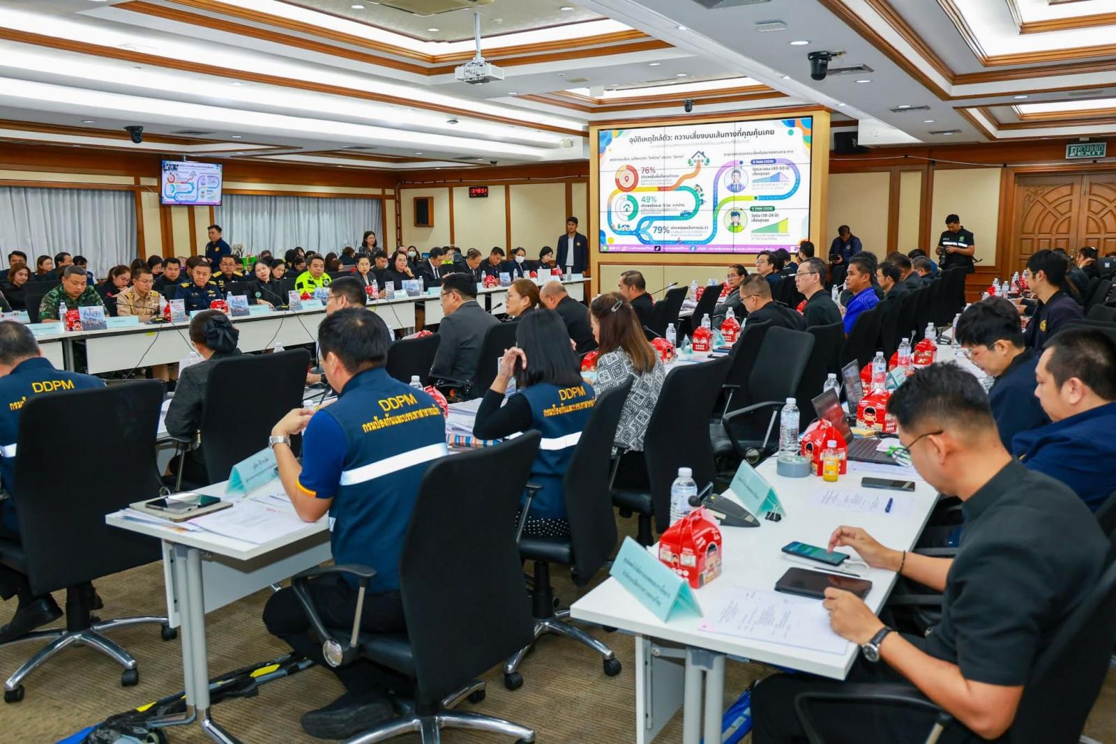 วันที่ 6 ม.ค.2569 ที่ ศูนย์อำนวยการป้องกันและลดอุบัติเหตุทางถนน (ศปภ.) นายชัยวัฒน์ ชื่นโกสุม รองปลัดกระทรวงมหาดไทย ได้เดินทางมาเป็นประธานพิธีปิดศูนย์และการแถลงข่าวสรุปผลการดำเนินงานฯ ช่วงเทศกาลปีใหม่ ช่วงระหว่างวันที่ 30 ธัมวาคม 2568 ถึงวันที่ 5 มกราคม 2569 รวม 7 วัน เกิดอุบัติเหตุ 142 ครั้ง มีผู้บาดเจ็บ 155 ราย เสียชีวิต 19 ราย ขณะที่ภาพรวมอุบัติเหตุสะสมตลอดช่วงรณรงค์ 7 วัน พบว่า เกิดอุบัติเหตุรวม 1,511 ครั้ง ผู้บาดเจ็บ 1,464 คน และผู้เสียชีวิต 272 ราย สาเหตุหลักของการเกิดอุบัติเหตุยังคงมาจากการขับขี่เร็วเกินกำหนด ร้อยละ 38.26 รองลงมาคือดื่มแล้วขับ ร้อยละ 21.36 และตัดหน้ากระชั้นชิด ร้อยละ 19.96 โดยยานพาหนะที่เกิดอุบัติเหตุมากที่สุดคือรถจักรยานยนต์ ร้อยละ 72.96