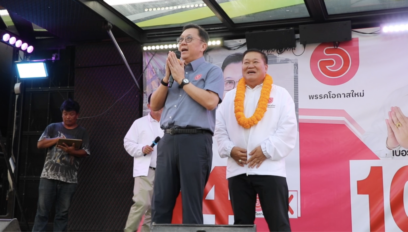 โดยน้าตุ๋ม นายจตุพร บุรุษพัฒน์ หัวหน้าพรรคโอกาสใหม่ เบอร์ที่ 44 ได้ปราศรัยบนเวทีว่านโยบายของพรรคโอกาศใหม่หากเลือกพรรคโอกาสใหม่ประเทศไทยจะไม่มืดจากสว่างตลอดเวลา เพราะทุกอย่างต้องโปร่งใส ไฟต้องสว่าง นอกจากนี้จะแช่แข็งหนี้ไว้ก่อน เพื่อให้ผู้เป็นหนี้ได้ลืมตาอ้าปากได้ก่อนโดยไม่ถูกฟ้องร้องในภายหลัง รวมถึงหนี้ กยส.เราต้องเข้าไปช่วยเหลือกลุ่มลูกหนี้เหล่านี้ด้วย ทำให้ประชาชนที่เดินทางมาฟังปราศรัยในครั้งนี้ตอบรับกับนโยบายของพรรคโอกาสใหม่ที่ลงพื้นที่ในครั้งนี้