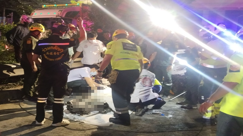 เจ้าหน้าที่และอาสากู้ภัยมูลนิธิร่วมกตัญญู ได้เร่งนำอุปกรณ์ช่วยเหลือ นายวี อา เล ชาวเมียนมาอายุประมาณ 30 ปี ขณะประสบเหตุถูกดินทับร่าง ขณะลงไปทำงานภายใน อุโมงค์ท่อร้อยสายไฟ ซึ่งเป็นโครงการเปลี่ยนระบบสายไฟฟ้าอากาศเป็นสายไฟฟ้าใต้ดิน ของการไฟฟ้านครหลวง