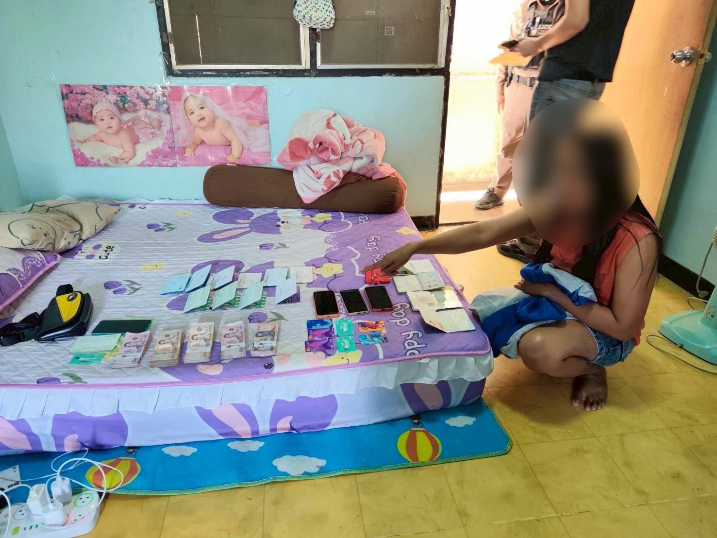 พฤติการณ์ สืบเนื่องจากเจ้าหน้าที่ตำรวจ กก.3 บก.ปอท. ได้รับแจ้งจากผู้เสียหายว่าถูกคนร้ายหลอกขายโทรศัพท์ ในเฟซบุ๊ก ผู้เสียหายหลงเชื่อและได้โอนเงินไปยังเพจเฟซบุ๊กดังกล่าว ต่อมาผู้เสียหายได้พบคนร้ายใช้เพจ อ้างตัวเป็นเจ้าหน้าที่ตำรวจสอบสวนกลาง หลอกผู้เสียหายว่าจะติดตามเงินคืนให้ โดยให้เพิ่มไลน์และให้ทำการเทรดหุ้น ผู้เสียหายหลงเชื่อและโอนเงิน โดยคนร้ายจะมีข้ออ้างให้โอนเงินเพิ่มขึ้นเรื่อย ๆ รวมความเสียหายเป็นเงินกว่า 8 แสนบาท