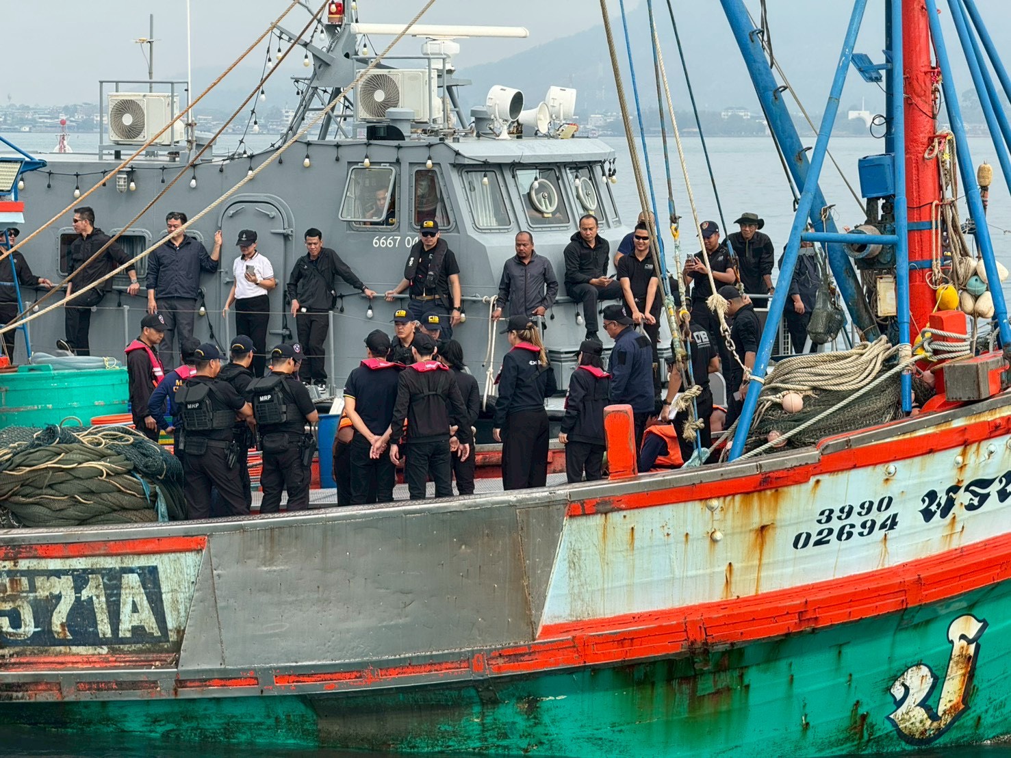 พ.ต.ต.รณชิต ใจเที่ยงแท้ สว.ส.รน.3 กก.5 บก.รน.และข้าราชการตำรวจ ประจำเรือตรวจการณ์ 815 , 705 และ 633 นำเรือออกเพื่อสาธิตการตรวจค้นบนเรือประมงในทะเล ที่เข้าร่วมโครงการจำหน่ายน้ำมันดีเซลสำหรับชาวประมงในเขตต่อเนื่องของราชอาณาจักร(น้ำมันเขียว) ในน่านน้ำทะเล อ.เมืองระยอง