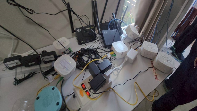 จากการตรวจสอบภายในห้องพักดังกล่าวพบว่าสภาพห้องบางส่วนไม่มีการอยู่อาศัย และพบการติดตั้งอุปกรณ์เครือข่ายและอุปกรณ์คอมพิวเตอร์ที่มีลักษณะดัดแปลงเพื่อทำหน้าที่เป็น “จุดรวม–กระจายสัญญาณ” จำนวนหลายชิ้น รวมถึงการตั้งค่าระบบ VPN และอุปกรณ์เชื่อมต่อที่มีพฤติการณ์มุ่งส่งผ่านทราฟฟิกซึ่งถูกหันทิศการส่งสัญญาณไปยังประเทศเมียนมา