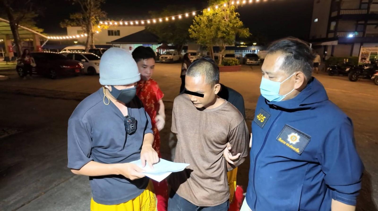 หลังเกิดเหตุ พล.ต.ท.สยาม บุญสม ผบช.น. ได้สั่งการให้ พล.ต.ต.ธีรเดช ธรรมสุธีร์ รอง ผบช.น. , พ.ต.อ.ศักดิเดช กัมพลานุวงศ์ ผกก.สน.ประชาชื่น ระดมกำลังเจ้าหน้าที่ฝ่ายสืบสวน สน.ประชาชื่น และ ชุดยาเสพติด บช.น. (ศอ.ปส.บช.น.) ลงพื้นที่ตรวจสอบติดตามคนร้ายในพื้นที่ชุมชนบ่อฝรั่ง แต่คนร้ายไหวตัวทัน หอบผ้าวิ่งหลบหนีออกจากชุมชน หนีการจับกุมไปได้อย่างฉิวเฉียดอีกครั้ง ในการสืบสวนติดตามยากลำบาก เพราะคนร้ายเป็น “คนเถื่อน” อยู่ในแก๊งหัวจ่ายยาเสพติด สถานะไร้ตัวตน ทีมสืบสวนแกะรอยเปลี่ยนจากหาคนเป็นหาของกลาง นานเกือบสัปดาห์ กระทั่งได้พบพระเครื่องจนทราบผู้ขายฉายา “โจโจ้” ชอบไปตามวัดย่านบางบัวทอง นนทบุรี กระทั่งทีมสืบสวนได้พบกับคนร้ายที่วัดแห่งหนึ่งในพื้นที่ย่านบางบัวทอง แต่คนร้ายระวังตัวตลอดเวลา เมื่อได้สบตากับทีมสืบสวนเห็นท่าทางคล้ายทรงสืบ คนร้ายจึงได้วิ่งหลบหนีไปคลาดกับทีมสืบสวนไปได้กว่า 3 ครั้ง “ต้องไม่มีครั้งที่ 4” พล.ต.ต.ธีรเดชฯ สั่งการวางแผนการจับกุมด้วยแผนการพลางตัวสุดแยบยลเพื่อเข้าถึงตัวคนร้ายโดยมิให้รู้ตัว กระทั่งวันที่ 18 ก.พ. 69 ชุดสืบสวนสืบทราบว่าคนร้ายนัดหมายกับกลุ่มเพื่อนเพื่อจะไปมั่วสุมยาเสพติดตามวัด จึงวางแผนกระจายตามวัด โดยทีมสืบสวนปลอมตัวเป็นคณะเชิดสิงโตอยู่ในงานประจำปี ณ วัดชื่อดังแห่งหนึ่งใน ต.ไทรน้อย อ.ไทรน้อย จ.นนทบุรี เพื่อสังเกตการณ์ตามล่าคนร้าย กระทั่งช่วงค่ำ ทีมสืบสวนได้ไล่แสกนหน้าบุคคลภายในวัดพบกับชายต้องสงสัยใบหน้าคล้ายคนร้ายมาปรากฏตัวภายในวัด ครานี้ทีมสืบสวนจะไม่ปล่อยให้คนร้ายวิ่งหลบหนีได้อีก ทีมสืบสวนในบทบาทคณะสิงโตจึงค่อยๆ เชิดสิงโตเข้าไปใกล้ๆ กับคนร้าย จนประชิดตัวร้าย ก่อนล้อมรวบจับคนร้ายได้ในที่สุด โดยคนร้ายยังอยู่ในอาการงุนงง หลังจับกุมตรวจสอบพบว่าคนร้ายคือ นายอดิศักดิ์ ธโนภาส หรือ โจโจ้ อายุ 33 ปี ตรวจพบว่าเคยต้องโทษคดีเกี่ยวกับ ยาเสพติด และ การลักทรัพย์ เป็นจำนวน 6 คดี จากการขยายผลชุดสืบสวนได้ยึดของกลางได้หลายรายการ และสืบทราบว่า นายอดิศักดิ์ฯ เป็นบุคคลที่ไม่มีทะเบียนราษฎร์เนื่องจากครอบครัวมิได้ไปแจ้งเกิด และใช้ชีวิตพเนจรมาตั้งแต่อายุเพียง 11 ปี อาศัยการลักเล็กขโมยน้อยเพื่อนำเงินไปซื้อยาเสพติดเสพ หลังจับกุมตัวได้นำตัวส่งพนักงานสอบสวน สน.ประชาชื่น เพื่อดำเนินคดีตามกฏหมายและทำการขยายผลเพื่อติดตามทรัพย์สินคืนผู้เสียหายต่อไป