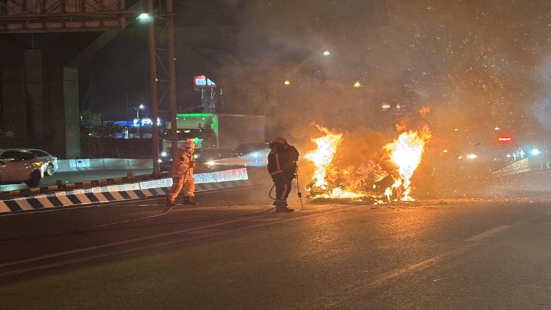 วันที่ 20 ก.พ.2569 ตำรวจ สน.วิภาวดี ได้รับแจ้งเหตุ เพลิงไหม้รถยนต์นั่งส่วนบุคคล บริเวณทางลงยกระดับอุตราภิมุข (ดอนเมืองโทลล์เวย์) ถนนวิภาวดีรังสิต ขาเข้า ช่วงใกล้แยกหลักสี่ จึงเข้าตรวจสอบเหตุพร้อม เจ้าหน้าที่ดับเพลิงดอนเมืองและอาสากู้ภัยร่วมกตัญญู