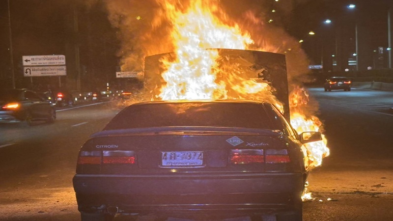 ที่เกิดเหตุพบรถยนต์เก๋ง ยี่ห้อซีตรอง สีดำ กรุงเทพมหานคร จอดอยู่ข้างทาง สภาพเพลิงกำลังลุกไหม้อย่างรุนแรง สร้างความตื่นตระหนกให้กับผู้ใช้รถใช้ถนนในบริเวณ ถนนวิภาวดี โดยต้นเพลิงเริ่มมาจากบริเวณห้องเครื่องยนต์ก่อนจะลุกลามอย่างรวดเร็วไปจนวอดเสียหายทั้งคัน เจ้าหน้าที่ดับเพลิงและกู้ภัยเร่งระดมฉีดน้ำประมาณ 15 นาที เพื่อควบคุมสถานการณ์จนเพลิงสงบ