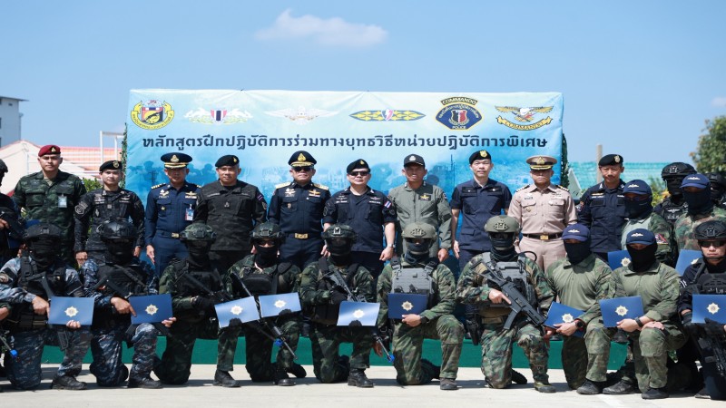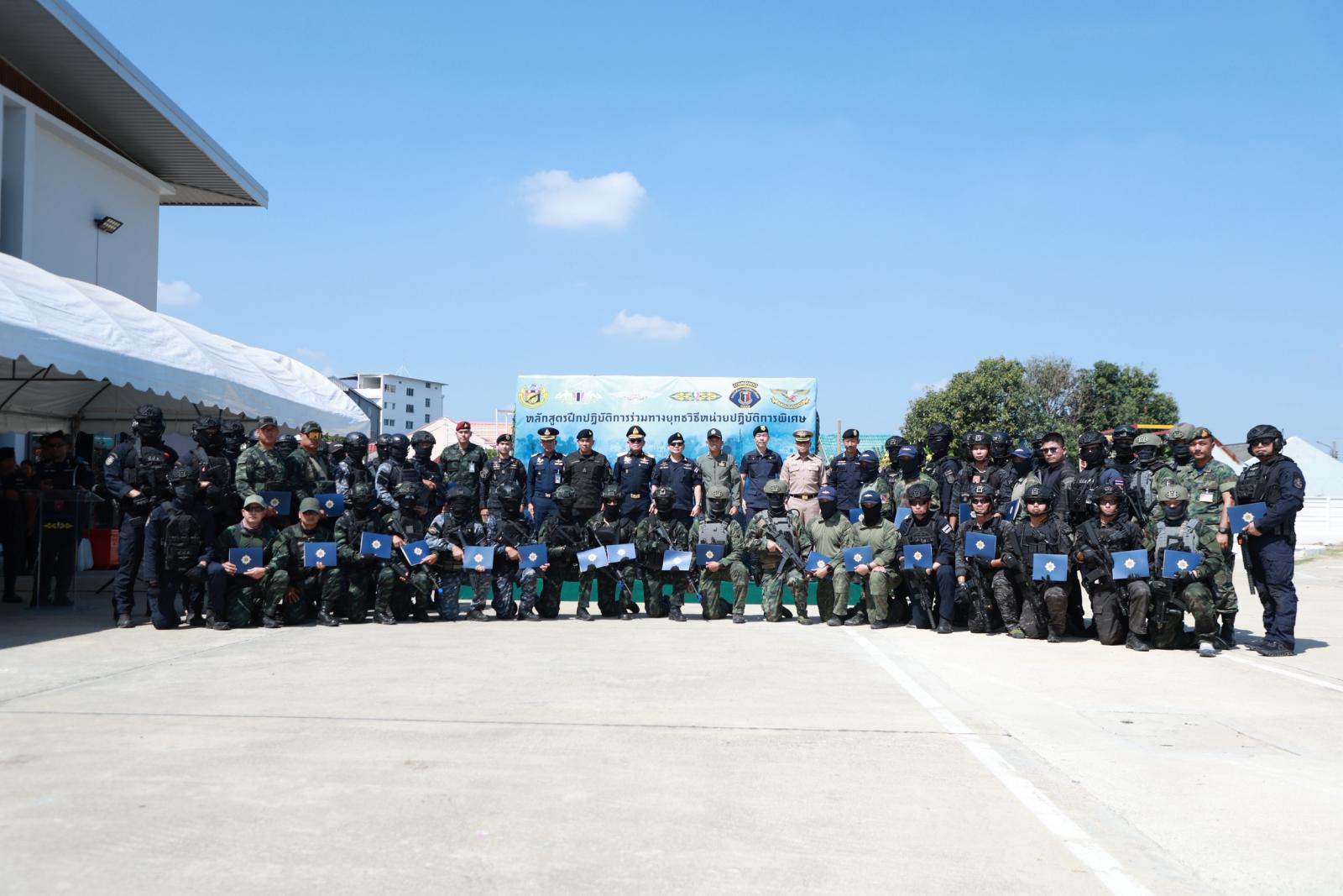 พ.ต.ต. สุริยา สิงหกมล เลขาธิการ ป.ป.ส. ให้เกียรติเป็นประธานในพิธีปิดการฝึกอบรมฯ พร้อมมอบวุฒิบัตรให้แก่ผู้สำเร็จการฝึกจำนวน 50 นาย โดยมีผู้บังคับบัญชาและผู้แทนจากหน่วยปฏิบัติการพิเศษระดับประเทศเข้าร่วมสังเกตการณ์และเป็นเกียรติในงาน ได้แก่ พล.ต.ต. ณรงค์ เอี่ยมสม ผู้บังคับการกองบินตำรวจ น.อ.อ. ไพศาล บุษบรรณ ผู้บังคับการกรมปฏิบัติการพิเศษ หน่วยบัญชาการอากาศโยธิน น.อ. โชคสถิต บุญถม รองผู้บังคับการกรมรบพิเศษ หน่วยบัญชาการสงครามพิเศษทางเรือ กองเรือยุทธการ พ.ต.อ. พิทักษ์ สุทธิกุล รองผู้บังคับการสายตรวจและปฏิบัติการพิเศษ พ.ต.อ. อาทิตย์ วงษ์จันนา ผู้กำกับการต่อต้านการก่อการร้าย (อรินทราช 26) พ.ต.อ. เจษฎา โสมมนัส ผู้กำกับการต่อต้านการก่อการร้าย (สยบริปูสะท้าน) และร.อ. บรรชา ช้างเขียว ผู้บังคับกองร้อยลาดตระเวนระยะไกลที่ 9 โดยภายในงานได้มีการจัดแสดงการสาธิตการฝึกอบรมฯ เพื่อโชว์ศักยภาพความพร้อมของชุดปฏิบัติการร่วม
