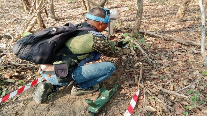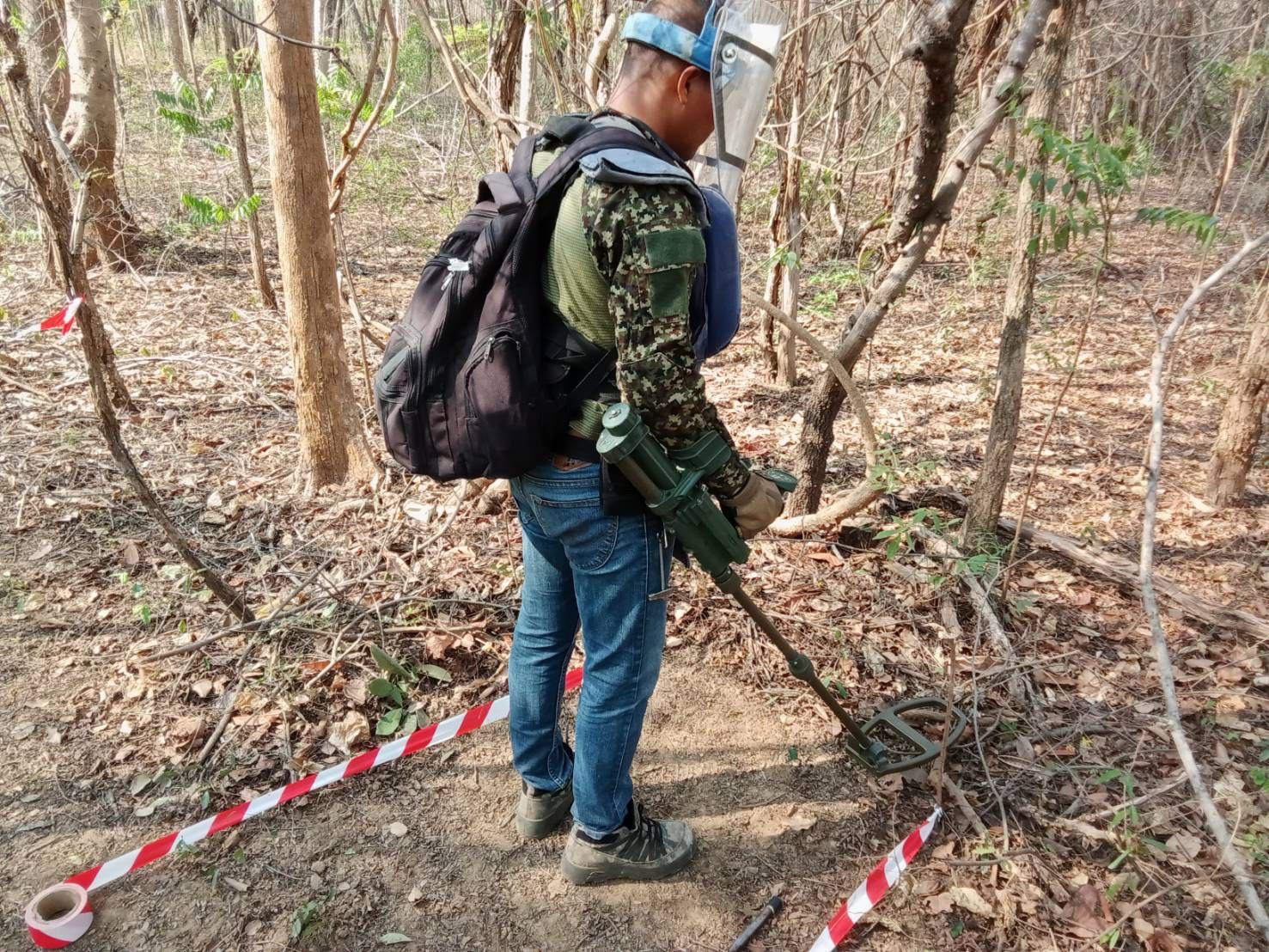 โดยวานนี้ (27 มี.ค.) เจ้าหน้าที่สามารถเคลียร์พื้นที่ด้วยวิธีตรวจค้นและทำลายวัตถุระเบิด (Clearance) ได้พื้นที่ปลอดภัย 1,000 ตารางเมตร และใช้วิธีตรวจสอบ (Technical Survey) เพิ่มอีก 2,000 ตารางเมตร รวมเป็นพื้นที่ปลอดภัยใหม่ 3,000 ตารางเมตร พร้อมกันนี้ตรวจพบทุ่นระเบิดสังหารบุคคลชนิด POMZ-2 จำนวน 1 ทุ่น ก่อนดำเนินการเก็บกู้ตามขั้นตอนความปลอดภัย