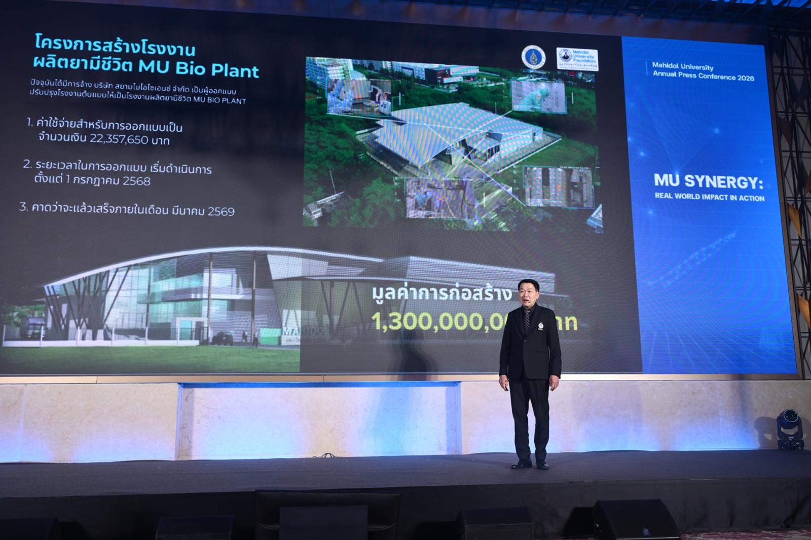 ศาสตราจารย์ นายแพทย์ปิยะมิตร ศรีธรา อธิการบดีมหาวิทยาลัยมหิดล กล่าวว่า ท่ามกลางวิกฤตความขัดแย้งทางภูมิรัฐศาสตร์ สงครามที่ยืดเยื้อ และความผันผวนของราคาพลังงานที่ส่งผลกระทบต่อเศรษฐกิจและค่าครองชีพทั่วโลก ประเทศไทยจำเป็นต้องมีภูมิคุ้มกันทางเศรษฐกิจ ที่แข็งแกร่งและพึ่งพาตนเองโดยในปี 2569 มหาวิทยาลัยมหิดลได้ก้าวเข้าสู่ระยะที่ 2 ของยุทธศาสตร์ ‘Real World Impact’ ภายใต้แนวคิด ‘MU SYNERGY: Real World Impact in Action’ เน้นการลงมือทำจริงและการผนึกกำลังกับภาคเอกชนให้เข้มข้นยิ่งขึ้น มุ่งปลดล็อกข้อจำกัดทางวิชาการ ยกระดับความร่วมมือกับภาคเอกชน และเปลี่ยนงานวิจัยให้เป็นอาวุธทางเศรษฐกิจที่จับต้องได้จริง เพื่อดึงดูดการลงทุนจากต่างชาติ ช่วยเพิ่มมูลค่า GDP และขับเคลื่อนประเทศ โดยขับเคลื่อนผ่าน 5 เสาหลักที่ออกแบบเพื่อสร้างผลลัพธ์ทางเศรษฐกิจอย่างเป็นรูปธรรมและยั่งยืน ได้แก่