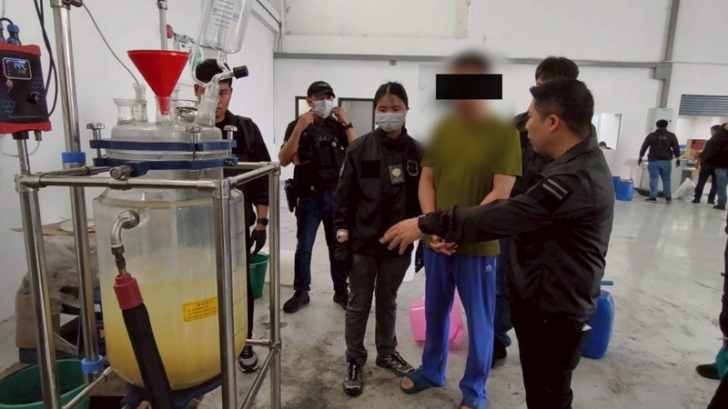 การจับกุมดังกล่าวสืบเนื่องมาจาก สำนักปราบปรามยาเสพติด สืบสวนขยายผลเครือข่ายกลุ่มผู้ลักลอบผลิตสารอีโทมิเดตซึ่งนำมาผสมกับบุหรี่ไฟฟ้ามาอย่างต่อเนื่อง โดยเมื่อต้นปี 2569 พบความเคลื่อนไหวของเครือข่ายชาวจีนในพื้นที่ภาคกลาง มีการสั่งซื้อสารเคมีจำนวนมาก เช่าโรงงานในพื้นที่ จ.สมุทรปราการ และพบการเปิดบริษัทบังหน้า สำนักปราบปรามยาเสพติดจึงแลกเปลี่ยนข้อมูลข่าวสารร่วมกับกระทรวงความมั่นคงสาธารณะ และคณะกรรมการควบคุมยาเสพติดแห่งชาติ สาธารณรัฐประชาชนจีน(NNCC) เพื่อพิสูจน์ทราบ พบว่าเครือข่ายชาวจีนดังกล่าวมีประวัติเกี่ยวข้องกับการลักลอบจำหน่ายเอโทมิเดต ใน 3 ประเทศ ได้แก่ ประเทศไทย สาธารณรัฐประชาชนจีน และประเทศเวียดนาม สำนักปราบปรามยาเสพติด และ NNCC จึงทำการบูรณาการความร่วมมือระหว่างกันเรื่อยมา กระทั่งต้นเดือนเมษายนได้สืบสวนรวบรวมพยานหลักฐานขอหมายศาลเข้าตรวจค้นดังกล่าว