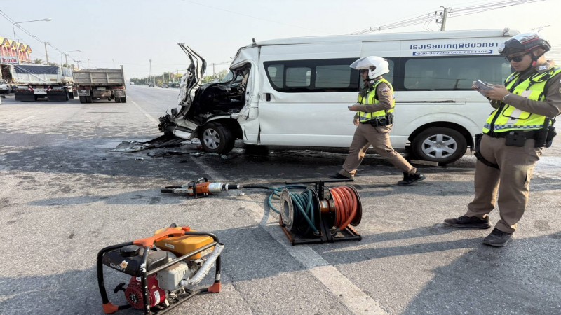 เมื่อเวลาศูนย์ 7.45 น. วันที่ 7 เมษายน 2569 ร.ต.อ.กิตติศักดิ์ สุวรรณศรี รองสารวัตรสอบสวนสภ. โคกตูมอ อ.เมืองลพบุรี พร้อมด้วยเจ้าที่อาสาสมัครมูลนิธิร่วมกตัญญูลพบุรีตรวจสอบที่เกิดเหตุบ่อบริเวณถนน ใกล้โรงฆ่าสัตว์โคกตูม ซอย 0 ถนน 3333ต.โคกตูม อ.เมืองลพบุรี จ.ลพบุรี ในที่เกิดเหตุพบรถตู้โตโยต้าสีขาวหมายเลขทะเบียน นข.6004 ลพบุรี จอดอยู่กลางถนนสภาพด้านหน้าพังยุบมีผู้ได้รับบาดเจ็บซึ่งเป็นนักเรียนติดอยู่ในรถ จำนวนหลายราย จึงช่วยกันลำเลียงนำส่งโรงพยาบาลพระนารายณ์มหาราชและโรงพยาบาลอนันทมหิดลและนอกจากนี้ยังมีผู้ปกครองนำส่งโรงพยาบาลเอกชนอีกหนึ่งแห่งรวมผู้ได้รับบาดเจ็บจำนวน 18 ราย ส่วนรถคู่กรณีเป็นรถ10 ล้อ ฮีโน่สีขาว หมายเลขทะเบียน 84-7174 สระบุรี จอดอยู่ข้างทาง