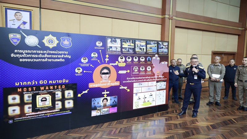 วันที่ 8 เม.ย.2569 พล.ต.ท.รุทธพล เนาวรัตน์ รัฐมนตรีว่าการกระทรวงยุติธรรม แถลงผลการปฏิบัติการจับกุมผู้ค้ายาเสพติดระดับสั่งการที่หลบหนีการจับกุมไปกบดาน ที่สาธารณรัฐเกาหลี โดยมี พ.ต.ต.สุริยา สิงหกมล เลขาธิการ ป.ป.ส., พล.ต.อ.กิตติ์รัฐ พันธุ์เพ็ชร์ ผบ.ตร., พล.ต.อ.สำราญ นวลมา รอง ผบ.ตร./ผอ.ศอ.ปส.ตร., พล.ต.ท.สมประสงค์ เย็นท้วม ผู้ช่วย ผบ.ตร./รอง ผอ.ศอ.ปส.ตร., พล.ต.ท.กฤษฎา กาญจนอลงกรณ์ ผู้ช่วย ผบ.ตร./รอง ผอ.ศอ.ปส.ตร., พล.ต.ท.อาชยน ไกรทอง ผบช.ปส., นายคณิศร ภาพีรนนท์ ผอ. สำนักปราบปรามยาเสพติด สำนักงาน ป.ป.ส., พล.ต.ต.พันธนะ นุชนารถ รอง ผบช.สตม., พล.ต.ต.ธนิต ไทยวัชรามาศ รอง ผบช.สตม., พล.ต.ต.ธีรเดช ธรรมสุธีร์ รอง ผบช.น./รอง โฆษก ตร., กองการต่างประเทศ (ตำรวจสากล), กองทะเบียนประวัติอาชญากร แถลงผลการจับกุมผู้ต้องหาคดียาเสพติดรายสำคัญระดับสั่งการที่มีความเคลื่อนไหวในระดับสากล โดยสำนักงาน ตำรวจแห่งชาติ ได้บูรณาการร่วมกับ สำนักงาน ป.ป.ส. และ สาธารณรัฐเกาหลี จับกุมพร้อมพิสูจน์อัตลักษณ์ยืนยันตัวบุคคล อย่างละเอียดจนเป็นที่ประจักษ์พร้อมส่งเจ้าหน้าที่ตำรวจจากประเทศไทยควบคุมตัวนายฐปนันท์ หรือ “หนูเฉิน” ณ สาธารณรัฐเกาหลี เพื่อนำกลับมาดำเนินคดีตามกฎหมายและขยายผลการสืบสวนเพื่อทำลายเครือข่ายยาเสพติดอื่น ๆ ที่เกี่ยวข้องต่อไป
